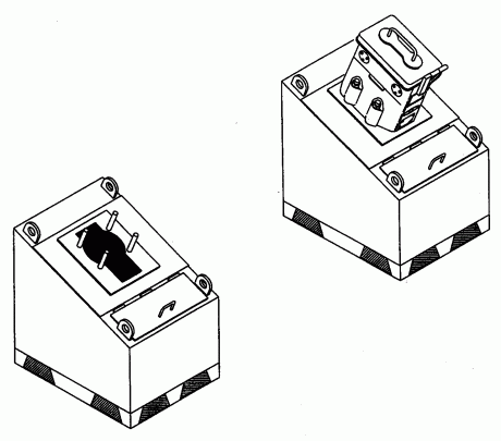Place 1 assembly in the custom built steel container and bolt down to the four threaded studs. The empty container measures 34.25″ x 44″. It is 45″ high at the back and 26.5″ high in the front. The container top measures 34.25″ x 47.5″ and slopes from back to front at a 67 degree angle. The storage door opening in the front part of the container measures 9.25″ x 27.75″ x 9.25″ deep.
