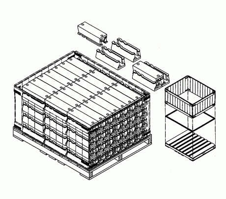 Place twenty-four side bearing cages up and interlock them by placing twenty-one down in an alternating fashion. Each of four layers will consist of three sets of 15 interlocked pieces for a total of 45 cages per layer and 180 pieces per package. Depending upon the size of each piece and the quantity ordered, a lower crate than the one specified may be appropriate.