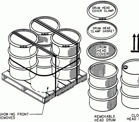 Steel shipping and storage drums must meet the relevant DOT, UFC or UN specifications as required by the commodity to be contained. Labels indicating direction upright positions may also be applied to each drum.